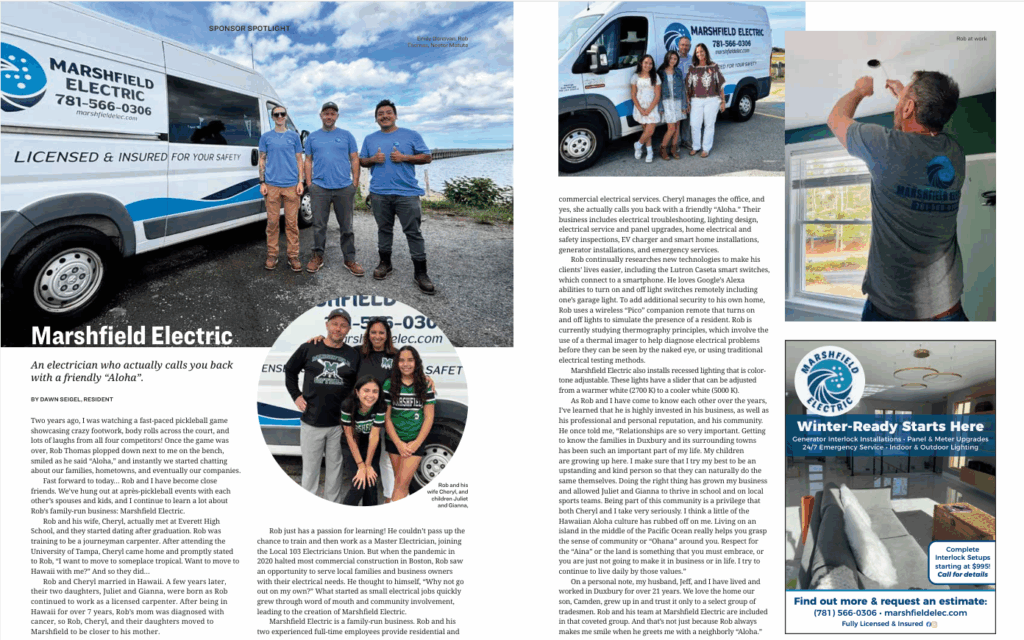 At Marshfield Electric, we offer a full range of electrical services tailored to both residential and commercial properties. Our team specializes in everything from electrical panel upgrades, smart home installations, and EV charger installations, to troubleshooting electrical issues, performing routine electrical inspections, and more. Whether you need to enhance your home’s safety with specific outlets or need recessed lighting installed, we are equipped to handle projects of any size.